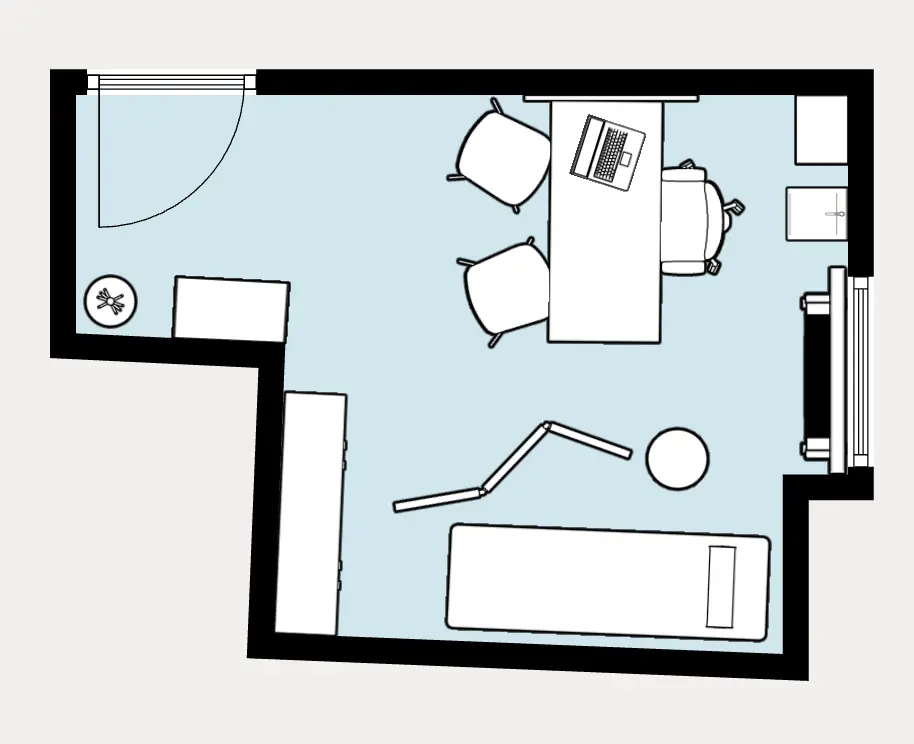 Grazie alla sua ampiezza e alla forte luminosità naturale, lo Studio Elite si presta a visite più lunghe, consulenze approfondite e attività che beneficiano di un ambiente confortevole e visivamente equilibrato.